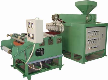 本系列机组主要用于生产单向拉伸聚乙烯塑料薄膜(拉伸膜、缠绕膜)以及保鲜膜,生产的薄膜可达到一边粘或俩边粘的效果,广泛应用于建筑材料、五金配件等包装。机组螺杆采用38CRNOALA合金钢,经氮化处理和精密加工而成,硬度高,经久耐用。温控采用先进自动控制系统, T型模具采用多点调节,使膜料厚度更加均匀。冷却装置采用循环水冷却,冷却效果好。卷取装置采用摩擦式卷取,并配有切边装置及边料往返收卷机构,使卷取的薄膜更为整齐。